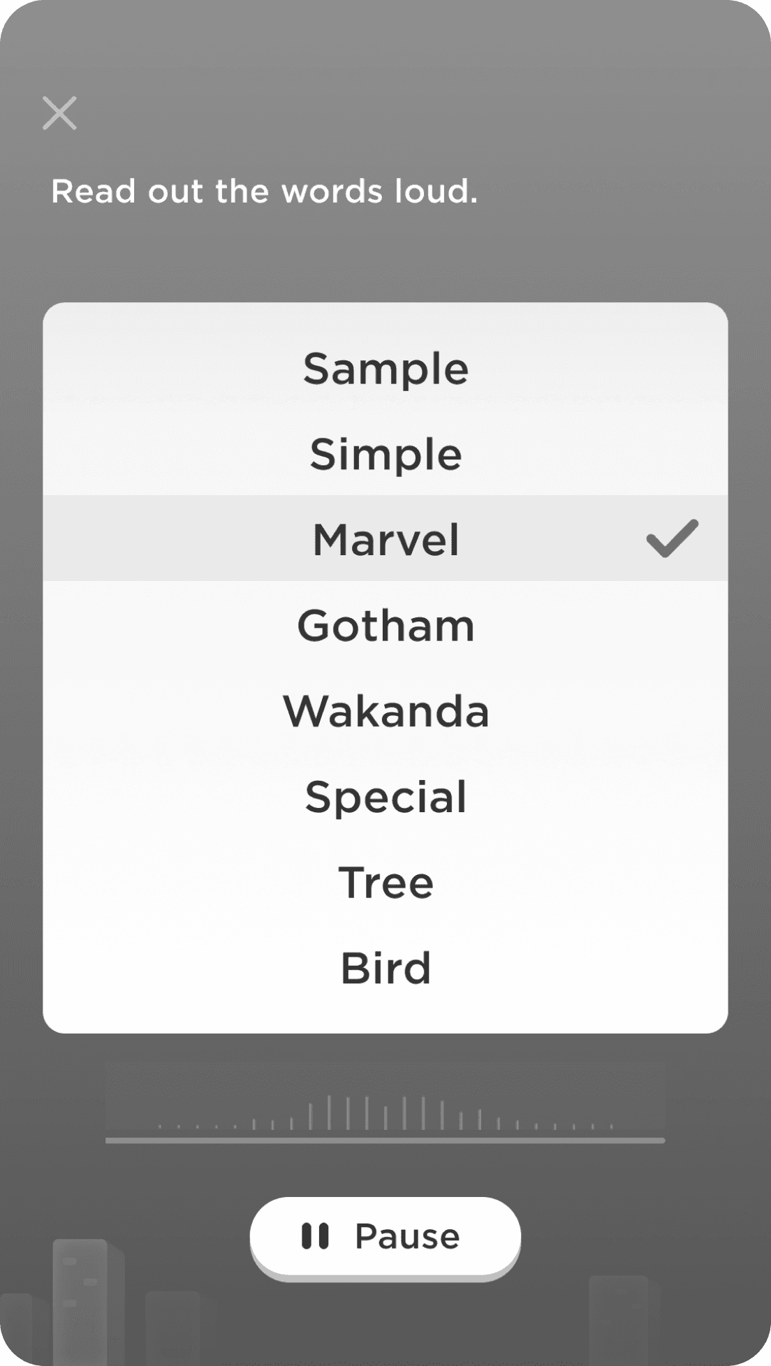 Words appear on the screen for users to pronounce, and once recognised, they are replaced with new words.